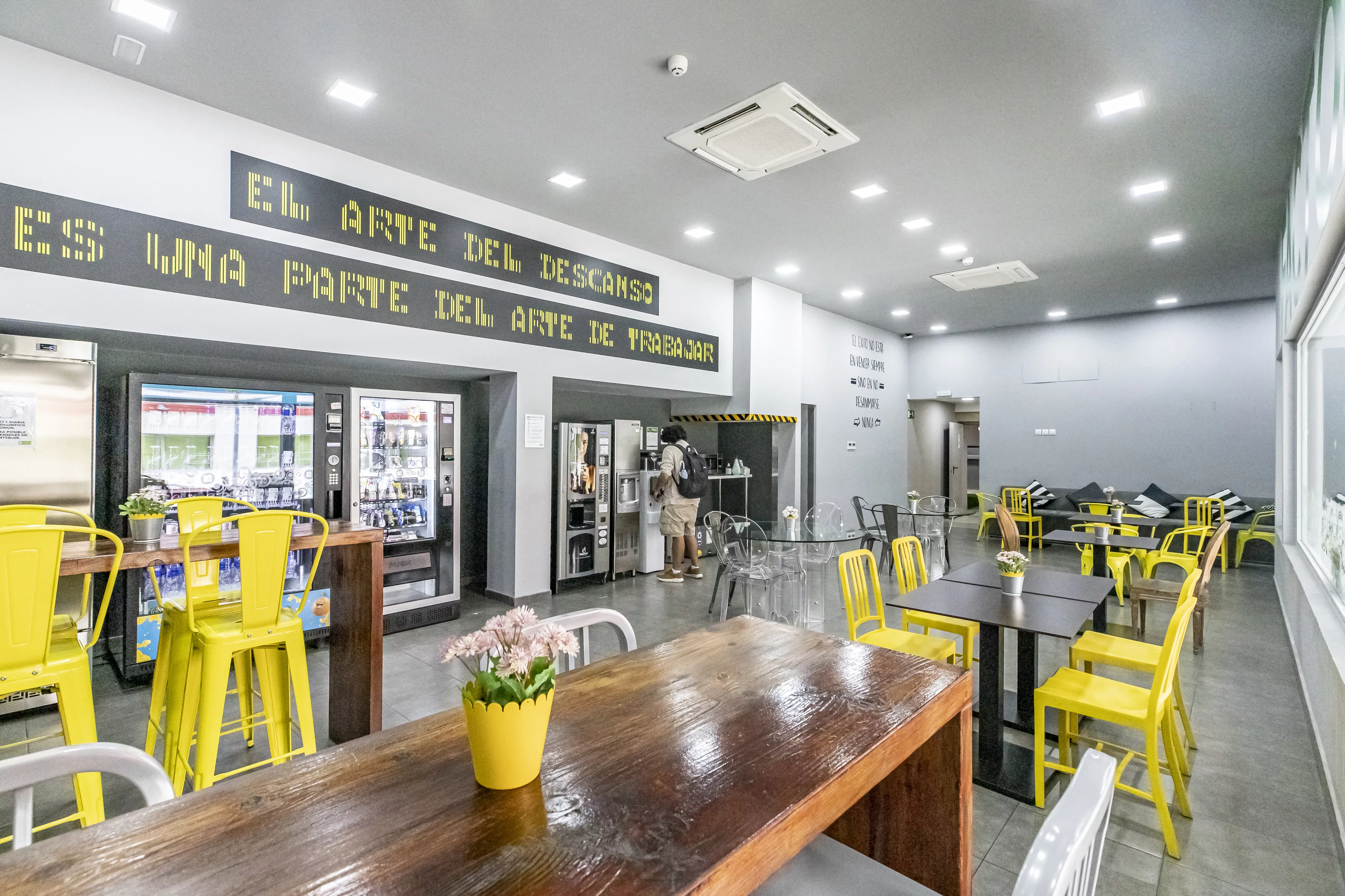 - Infraestructura de primer nivel. Cada despacho cuenta con acceso a Internet de alta velocidad, servicios de impresión y copiado. Además, tienes acceso a áreas comunes como salas de reuniones, zonas de descanso, terraza y comedor con máquinas de vending, lo que facilita la organización de reuniones y la colaboración en equipo.