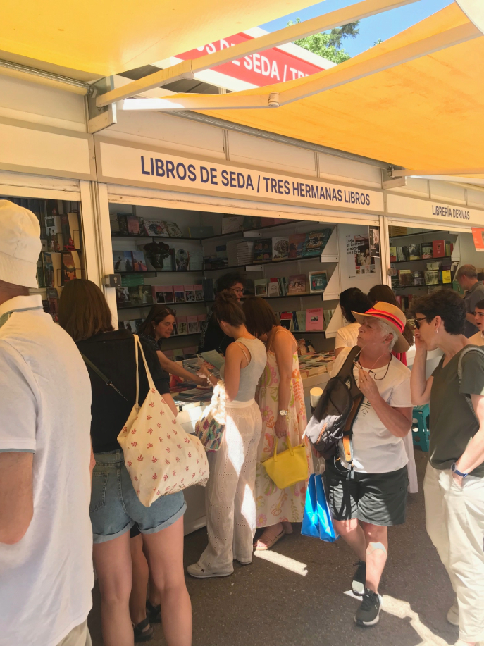Y en medio del recorrido, no podía faltar una parada muy especial: el stand de Libros de Seda, una editorial a la que le tengo mucho cariño porque además es clienta de Factoría Meeu. Publican novelas románticas, históricas y de ficción femenina. Fue un gustazo ver su espacio tan bonito y tan lleno de gente con ganas de leer.