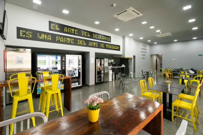 En Factoría Meeu , entendemos la importancia de mantener una buena alimentación en tu rutina diaria. Por eso, en nuestro centro de negocios contamos con una zona de comedor equipada, donde podrás disfrutar cómodamente de tus comidas. Y si alguna semana no tienes ganas de preparar tu menú, siempre puedes hacer un pedido en Superfuüd , solo tienes que utilizar el código QR que hay en el comedor y recibirlo en tan solo 15 minutos directamente en tu oficina.