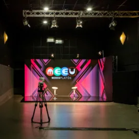 Como expertos en eventos, entendemos la importancia de contar con el entorno adecuado para hacer que tus ideas cobren vida. Los eventos audiovisuales no son solo una tendencia, son una necesidad en un mundo donde la conexión virtual es vital. Es por eso que en Factoría Meeu ofrecemos Meeu Platós: un espacio que va más allá de tus expectativas y te lleva al siguiente nivel en tus proyectos.